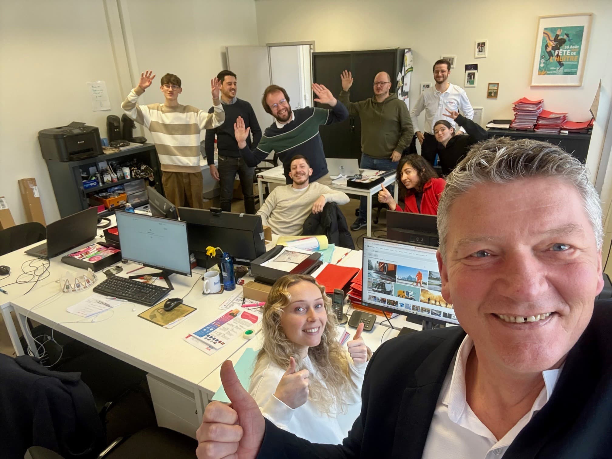 Aujourd’hui, Pascal est toujours fidèle au poste, avec presque toute l’équipe Selltim réunie pour l’occasion dans l’open space créa ( Camille, Sonia, Benoit, Arthur, Alan, Thomas, Pierre-Luc, Lucien, Emeline)